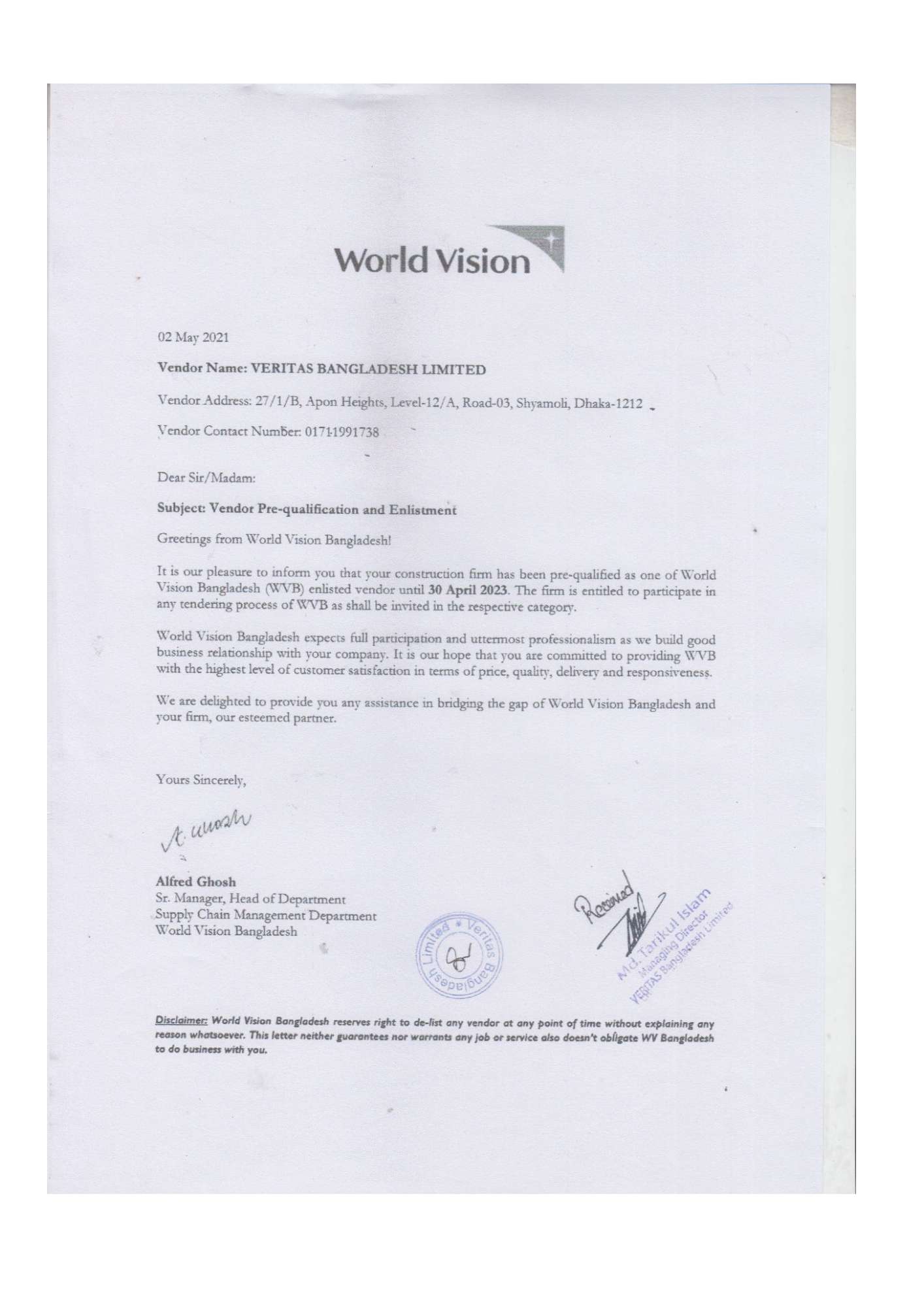 VERITAS Engineering & Consultant Ltd. has been enlisted as an Inspection Firm for Structural Integration, Electrical & Fire safety of Peoples Republic of Bangladesh.